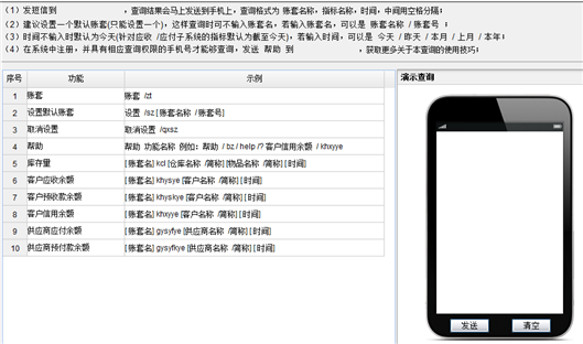 短信查询显示规则为:账套名称,指标名称,时间,中间用空格分隔。其中账套名称可以是简称、账套号。为了方便查询,可以在有查询权限的手机上设置默认账套。