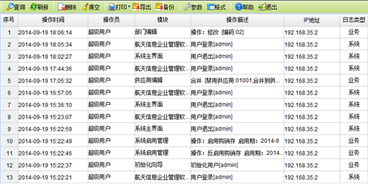 为了保证系统的安全运行,系统对每个操作员的操作时间、操作的具体功能等情况都进行登记,形成日志,使所有的操作都有记录,有迹可寻。如下图所示: