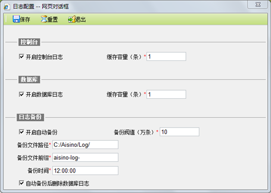 1.设置控制台与数据库的缓存容量,容量的记量单位为条,是指多少条日志信息;