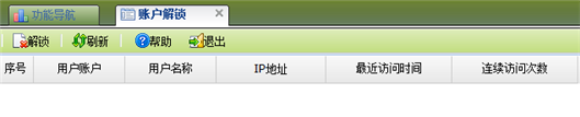 【第一步】点击“我的系统/系统监控/账户解锁” 菜单项,进入锁定账户管理页面。如下图所示: