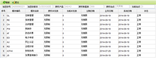 在此页面可查到相应的授权信息,例如模块的并发数、过期时间、当前状态等信息。
