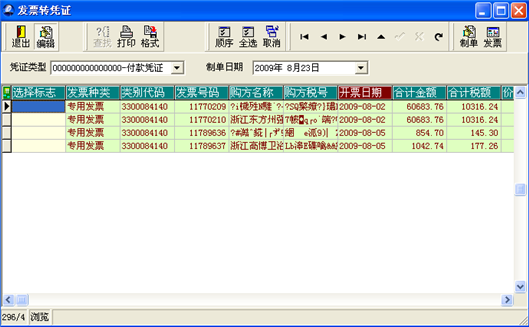 【主要功能】将在开票软件开具的防伪税控发票,转成凭证,并保存在企业管理软件的总账管理子系统中。如下图所示: