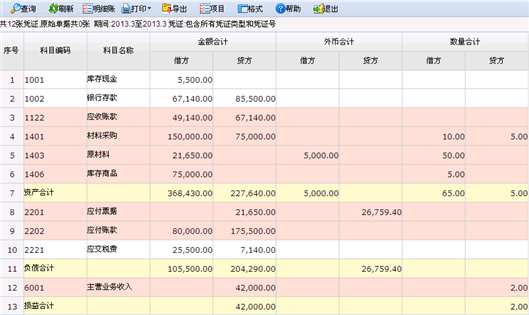 【第二步】设置科目汇总条件后,点击〖确定〗按钮,系统生成符合条件的科目汇总表,如下图所示