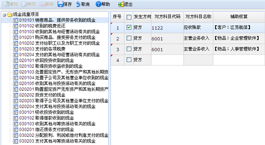 【主要功能】通过建立对方科目与现金流量表项的对应关系,然后根据此对应关系在进行现金流量分配时自动指定,自动生成现金流量分录。