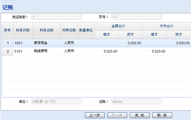 【第四步】点击〖完成〗按钮执行记账并自动登记相关账簿。