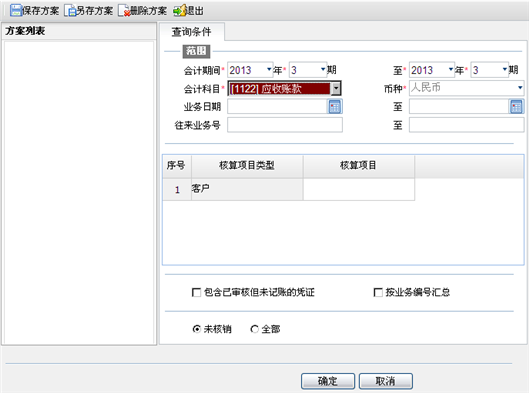 - 核算项:可录入具体客户及供应商进行查询。
