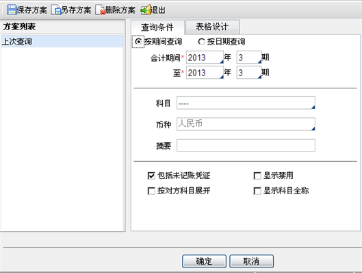 - 会计期间: 可输入查询的起止会计期间,也可按日期进行查询。