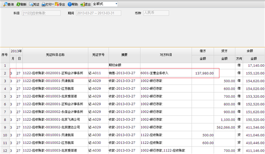 - 选择明细行,点击〖凭证〗按钮,可联查相关凭证。