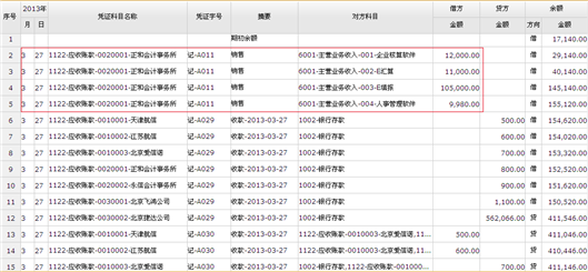若查询条件勾选“按对方科目展开”,则查询结果如下图