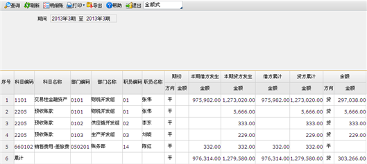 【主要功能】以辅助项目为主,用于查询统计各辅助项目下相应会计科目的借方、贷方和余额等情况。