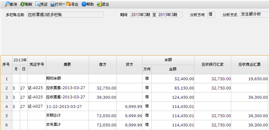 【第二步】点击〖确定〗按钮进入科目多栏账查询页面,如下图所示