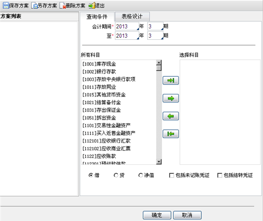 - 选择科目:显示已选择要进行查询的科目。