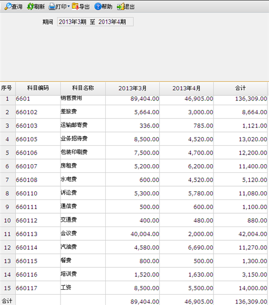 - 会计期间:下拉选择会计期间,可进行跨期查询和跨年查询。