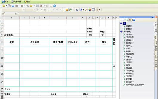 在此页面,可直接将变量拖拉到单元格中,还可以添加文本框、图片、线条、统计图、树列表。可将设置好的打印模板设置为默认模板,方便以后打印。