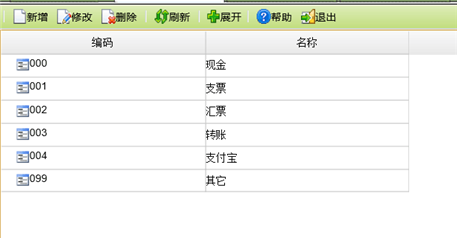 - 根据菜单路径进入结算方式页面,在结算方式页面点击〖新增〗按钮进入结算方式编辑页面。如下图所示: