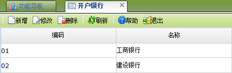 【主要功能】对企业的开户银行进行新增、修改、删除等功能。如下图所示: