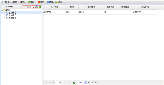 - 通过〖禁用〗按钮可对相应银行账号执行禁用功能。