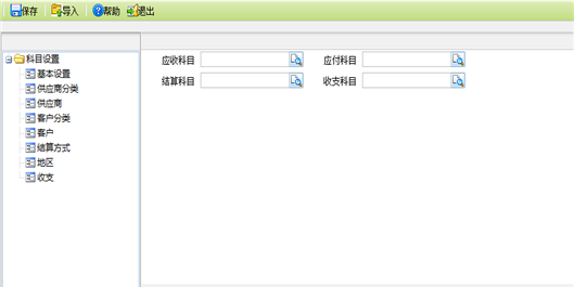 - 点击“基础数据/往来科目设置”进入往来科目设置页面,如下图所示: