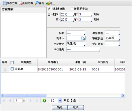 - 生成状态:选择单据是否已经生成日记账的情况。系统提供“已生成”“未生成” “全部”选项。已生成的单据只可查看,不能重复生成。