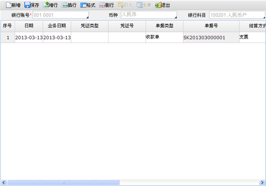 图4-1 单据生成银行存款日记账页面