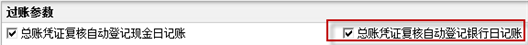 出纳复核是取得日记账数据的一种方式,只在出纳管理子系统与总账管理子系统集成使用,且勾选参数“总账凭证复核后自动登记日记账”时,才可通过出纳复核实现日记账的登记。如下图所示: