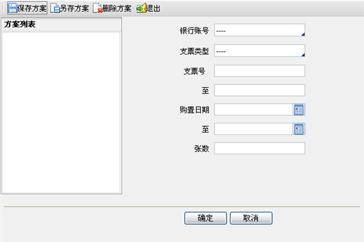 【主要功能】建立和管理新购支票的类型、起止支票号码、购置张数等情况。
