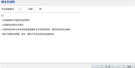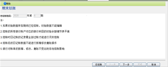 - 系统不允许跨月取消月末结账,只能从最后一个月逐月反结账。