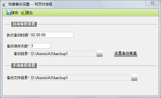 按钮,选择账套的自动备份路径。建议备份路径不要设置在系统盘内。 - 设置备份账套:选择自动备份的账套。
