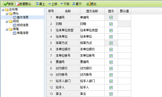 | 操作->格式,可对单据的布局及名称显示等进行调整,具体参见格式。 |