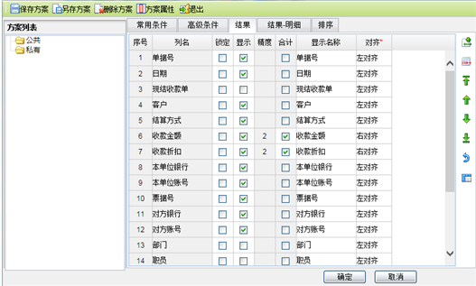 为了使用户更加直观的看到自己想要的项目和数据,可以设置数据项是否显示及精度等。也即列表格式设置功能。以收款单为例,查询页面如下图所示: