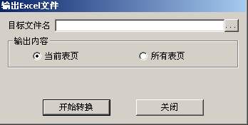 选择【文件】菜单,点击【导出Excel】,弹出“输出Excel文件”的页面,选择导出Excel文件(“.xls”)在本地的存放位置,点击“开始转换”,会将系统中的报表模板保存到本地电脑。点击“关闭”按钮,退出导入页面。“输出Excel文件”如下图所示:
