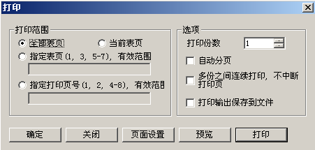 - 表页选项,主要是对多个表页的情况进行设置,可以打印多个表页。