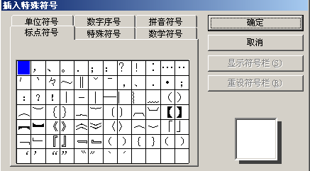 选中单元格,点击“编辑/插入特殊符号”,系统弹出特殊符号的页面,如下图所示: