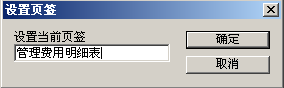 选中单元格,点击“表页/设置页签”,系统弹出“设置页签”窗口,用户可以额录入报表的页签名称,设置页面如下图所示: