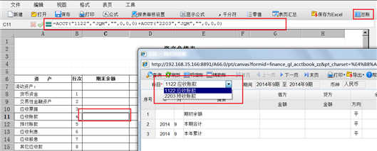 使用【总账】、【明细账】的按钮,可以查看ACCT公式中涉及科目的总账、明细账账表。总账、明细账按钮使用有前提条件,即报表取数的开始期间必须要不能小于建账期间,若小于时系统会给出提示。