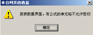 与【编辑】菜单下的【剪切】、【复制】、【粘贴】选项一样。在“显示公式”状态下,不论是选择公式单元格、还是文字型单元格格,均可以剪切、复制、粘贴。在“显示数据”状态下,若单元格未录入公式,则可以正常剪切、复制、粘贴单元格内容;若单元格录入了公式,则提示不能剪切、复制、粘贴,如下图所示:
