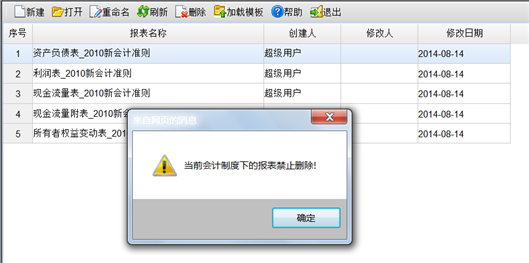 列表中当前会计制度默认加载的报表不能删除,如下图所示: