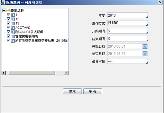 - 是否审核:分“----”、已审核、未审核。默认为“----”,即查询所有已保存的报表。