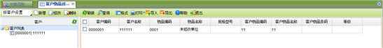 - 点击“客户物品对照表”菜单项,进入客户物品对照表页面。如下图所示: