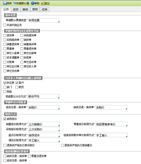 【主要功能】设置购销存管理子系统流程控制及单据控制参数。