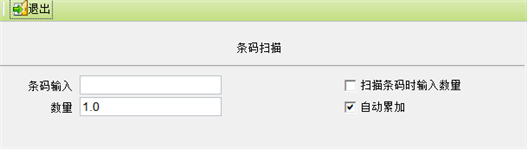 勾选“扫描条码时输入数量”,输入数量后敲回车键关闭条码录入窗口。未勾选“扫描条码时输入数量”则录入条码后直接敲回车键关闭条码录入窗口。或者直接点【退出】按钮,返回到单据录入页面。