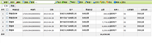 - 点击“购销存/销货/零售及退货单列表”菜单项,进入零售及退货单列表页面,如下图所示: