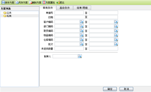 - 通过进货单单据页面工具栏上的【按销售进货】按钮,弹出销货单生成进货单查询条件页面: