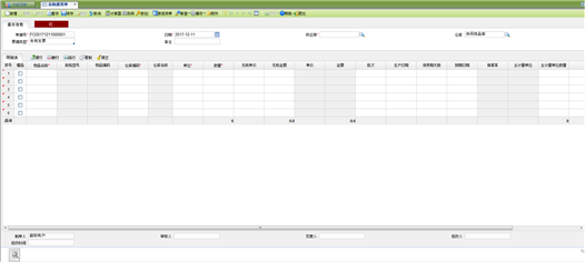 - 点击“购销存/进货/采购退货单”菜单项,进入采购退货单填制页面,如下图所示: