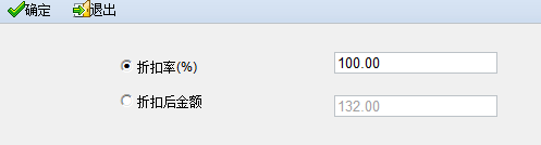 - 选择【折扣】按钮,系统弹出整单折扣界面,如下图所示: