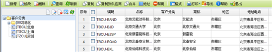 【主要功能】用于对客户进行维护,在此可新增、修改、删除、复制、禁用/启用客户档案。客户信息包括代码、名称、简称、类别、状态。