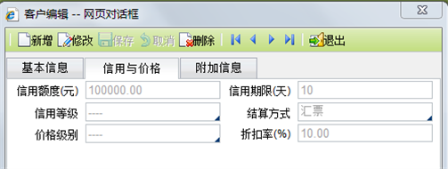 - 信用等级:按照用户自行设定的信用等级分级方法,依据客户在应收回款方面的表现,输入客户的信用等级。