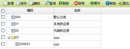 【主要功能】用于对供应商进行分类管理时建立分类体系。在此可新增、修改、删除、禁用/启用供应商分类。