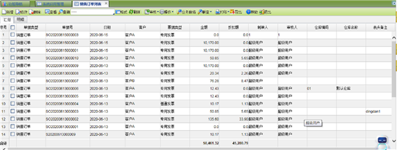 - 点击“购销存/销货/销售订单列表”菜单项,进入销售订单列表页面,如下图所示: