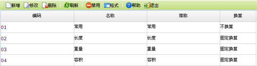 【主要功能】用于对计量单位进行分类管理时建立分类体系,可以满足用户多计量单位管理。在此可新增、修改、删除计量单位分类。